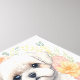 Cachorro maltés con flores de verano y arte en el