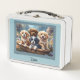 Esta lonchera cuenta con adorables cachorros en una canasta en un prado de flores. ¡El motivo perfecto para todos los amantes del perro y los niños! ¡Encantador suministro escolar de niños, bonito de vuelta a la escuela regalo! Fondo y texto personalizado.