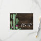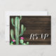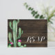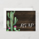 Un cactus acuarela y una tarjeta de respuesta RSVP de madera de grano.