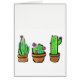 Tres cactus lindos con flores rosadas en pequeñas macetas de terracota: un divertido diseño del suroeste.