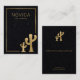 Cactus de moda en oro sobre un papel negro de lujo. Elegante tarjeta de visualización del anillo de retención con guías opcionales.