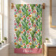 Este diseño de toalla de baño floral está completo con un bonito patrón continuo de cactus y flores en un estilo de acuarela brillante. Los cactus están sobre un fondo blanco y hay un lugar para agregar tu propio nombre.
