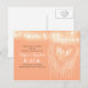 El color de melocotón elegante y moderno permite guardar las postales de fecha con el árbol del corazón de amor y una cuerda de luces. Perfecto, moderno pero vintage, ahorra la fecha para el jardín, patio trasero o boda rústico al aire libre.
