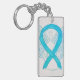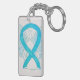 La cadena de teclas del ángel de la guarda presenta el arte de una pintura de ángel de cinta azul turquesa. La cadena de claves de arte de la cinta de ángel de la conciencia turquesa se puede personalizar con mensajes personalizados para hacer grandes campañas de recaudación de fondos, regalos de concientización u otros eventos o ocasiones especiales.
