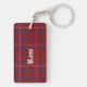 La cadena de claves de diseño se ha diseñado siguiendo el patrón de lona escocesa escocesa del clan Rosa rojo, blanco, azul y verde. El texto en negrita de estilo del mundo viejo y blanco, en el frente y en la parte posterior, está listo para personalizar para usted o como una gran idea de regalo.