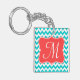 Moderna Aqua Coral Chevron Zig Zag Stripe Monograma Cadena de claves inicial personalizada