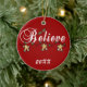 Una cadena de chicos de jengibre y texto que dice "Creer" en un adorno de feriado agudo que puedes personalizar con el año actual.