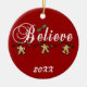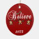 Una cadena de chicos de jengibre y texto que dice "Creer" en un adorno de feriado agudo que puedes personalizar con el año actual.