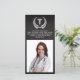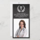 Fondo gris negro/carbón con aspecto templado y símbolo de caducidad médico blanco con una flor de laurel enmarcada alrededor de él. Un regalo encantador para la escuela de medicina, la escuela de enfermería u otros servicios de medicina y salud relacionados con estudiantes graduados o médicas practicantes. Todos los diseños Copyright © www.CustomInvitesOnline.com