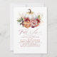La invitación a la ducha de novia incluye una calabaza blanca con acuarela adornada con terracota, rojo burdeos, flores rojas y hojas de oro