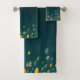 Caer hojas con elemento otoñal sobre fondo Verde azulado oscuro