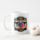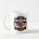 La taza del Taekwondo de la academia de Choon Lee ofrece el Tenents de TKD así como las palabras en inglés y coreano y el nombre de la escuela.