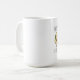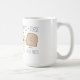 Una taza que ofrece un ilustracion del dibujo animado de un aguacate y de un pedazo de tostada con las caras. El texto dice el "aguacate + Mejores amigos de la tostada."