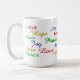 Paz, amor, alegría, esperanza - palabras que representan los regalos verdaderos de las vacaciones. Diseño por Victoria Lynn Pasillo.