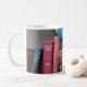 Una taza con una brillante manzana roja y una pila de libros clásicos son una tarjeta perfecta para agradecer a un profesor u otra persona en la educación.