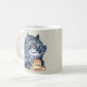 Una taza de la diversión para los amantes del gato y los admiradores del trabajo caprichoso del artista felino inglés Louis Wain. Cualquier lado es mi versión de un ilustracion por Wain de un gato de tabby azul de plata sonriente con los ojos amarillo-naranja suaves que comen una taza de té. Él sostiene una taza y un platillo adornados con una raya roja en sus patas. Para darle una idea de cómo usted puede personalizar la taza yo han añadido a la Julia conocida a ambas tazas usando la fuente negra de la hija de los arquitectos que usted puede cambiar al juego con el botón del personalizar. El fondo es un gris suave de la paloma pero usted puede también alterar esto a cualquier color que usted tenga gusto. La taza haría un nuevo hogar precioso o un nuevo regalo del mascota para el amante del gato en su vida.