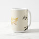 Delicada pintura de Bambú y peces + oro FELIZ AÑO NUEVO en vietnamita. Diseño en taza blanca (Tamaño: 15 oz). Coincidiendo con la tarjeta de saludo, la invitación y más... Perfecto para el Año Nuevo vietnamita con un diseño atemporal.