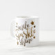 Una taza positiva hermosa de la cita, sonrisa, chispa, brillo en letras del oro.