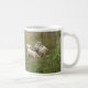 Esta linda taza muestra una hermosa fotografía de un grupo de lindos cerdos en un campo. Algunos de los cerdos están en la tierra mientras otros miran.