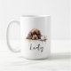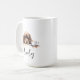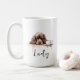 Una taza de café matutina con un espátula de cocker marrón con nombre personalizado en estilo de escritura. "Que tu café sea más fuerte que la actitud de tu perro" está escrito en la espalda. Un regalo perfecto para los dueños de perros que tienen un perro con actitud y también les encanta el café.