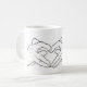 La mano marca un corazón con una taza de cuernos para cuando te sientes linda o fiestial.