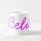 La escritura magenta grande "cree" la taza, motivación, inspiración, belleza. La magenta es un color de la balanza, armonizando el rojo puro (Yang, pasión, fuego, actividad) con rancio (yin, subconsciente, mente, los sueños). Crea. Bendiciones felices del punto com bien que desea feliz.