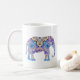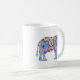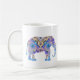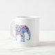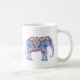 Esta taza de café se imprime con un diseño del elefante del caleidoscopio en lavanda, azul, y oro. Grande para el chocolate caliente u otras bebidas, también.