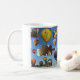 Un mosaico de las fotos del globo del aire caliente en una taza.