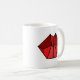 Los labios cúbicos, mano dibujada diseñaron la taza de café en sombras rojas múltiples.