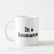 Taza de cerámica blanca con adentro un romance en texto negro