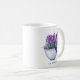Taza caprichosa y botánica con flores que presenta un ramo de lavanda al acuarela dentro de una taza de té. Personalice añadiendo nombres o una frase corta. Esta taza de lavanda será perfecta como regalo personalizado.
