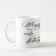 Esto es una taza blanca clásica con la afirmación "flujo de la riqueza de dinero a mí fácilmente y sin esfuerzo".
