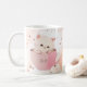 Café Gato blanco rosado en una taza de té