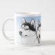 El diseño original de la bella arte de tres perros del husky siberiano del artista Carolyn McFann del estudio de ronroneo de dos gatos imprimió en un lavaplatos y una taza enorme segura de la microonda para los amantes del perro.