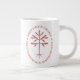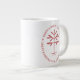 Un tazón de 20 onzas esperando tu bebida caliente de elección, con un sello rojo del rock de Simon a cada lado