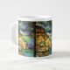 La reproducción magnífica del vitral de Nouveau del arte del vintage de Tiffany de un ciervo que bebe de una corriente en las maderas está en esta taza enorme impresionante.