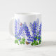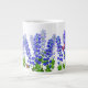 El diseño original de la bella arte de Delphinium o las flores y las mariposas de Larkspur del artista Carolyn McFann del estudio de ronroneo de dos gatos imprimió en una taza enorme de la calidad para las fans florales del arte.