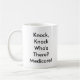 Goce de esta taza de la sátira que ofrece un bosquejo de la pluma del jubilado que golpea en la puerta. ¿Golpee el golpe, cuyo allí? Hallazgo de Seguro de enfermedad este diseño en un número de otros artículos incluyendo mousepads, camisetas, pegatinas y más