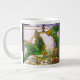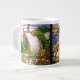 La reproducción magnífica del vitral de Nouveau del arte del vintage de un Cockatoo y de un arte verde de dos loros está en esta taza enorme. 20 onzas de líquido que se calienta para esos días y noches fríos.