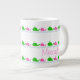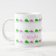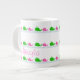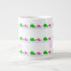 Las ballenas rosadas y verdes de la diversión nadan feliz a través de las ondas en esta taza enorme que usted pueda personalizar con cualquier texto conocido o preferido.