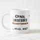 Este bonito enorme adaptable de torneado de madera chistoso de la taza del diseño resume mucho una vida de los woodturner. Dice, "woodturner loco, obsesionado… quién, yo?" Hay diversos estilos de las letras para cada palabra.