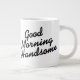 Taza enorme blanco y negro hermosa de la buena mañana para los hombres.