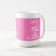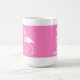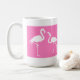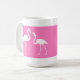 ¡Esto es una taza de la diversión para los amantes del flamenco! El diseño va hasta el final alrededor de la taza y ofrece dos flamencos en un fondo rosado brillante.