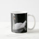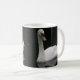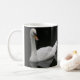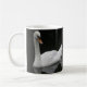 Esta taza de café muestra una fotografía de un hermoso cisne blanco. El cisne es un cisne mudo macho, se puede decir que es macho por el bulto negro en el pico. El cisne está deslizándose con gracia a través del agua en un lago tranquilo. El diseño se muestra aquí en una taza de café blanca básica, pero también está disponible en muchos otros estilos y colores de tazas.