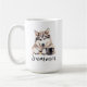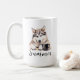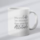 Un tazón de café matutino con un husky siberiano con nombre personalizado en estilo de guión. "Que tu café sea más fuerte que la actitud de tu perro" está escrito en la espalda. Un regalo perfecto para los dueños de perros que tienen un perro con actitud y también les encanta el café.