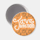 Un imán temático Java Junction en naranja clásico con un elegante patrón de café.
