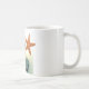 Esta taza de la playa ofrece una fotografía de flips-flopes en la playa y una fotografía de estrellas de mar.