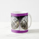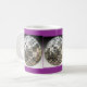 Abrigo de plata de tres bolas de espejo alrededor de esta taza temática del disco fresco y único. Se muestra una taza blanca con una frontera azul y acentos púrpuras, pero muchos estilos y colores de tazas están disponibles. Para cambiar el color azul y la frontera púrpura maravillosa del fondo apenas haga clic en el "personalizar él" y después haga clic en "corrigen" y entonces "fondo" para cambiarlos a su gusto. ¡Consiga listo para ir de fiesta! ¡Hace un regalo de la diversión!