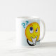 La taza divertida del signo de interrogación de la cara lee Hummm…