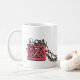 Burt y su caja de leche roja llena de cables al azar. ¡Es imprescindible tener una taza para cualquier gato tecnológico!